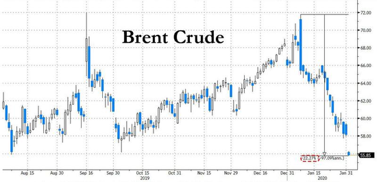 布伦特原油已经跌入熊市区域,自1月8日触及峰值以来暴跌了22%。